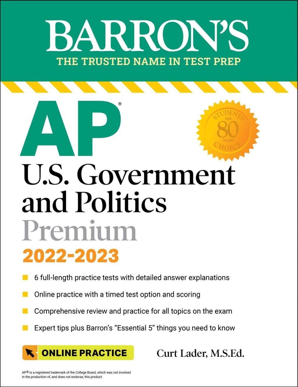 AP U.S. Government and Politics Premium, 2022-2023: Comprehensive Review with 6 Practice Tests + an Online Timed Test Option (anglicky)