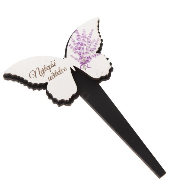 Dřevěný zápich motýl - levandule, "Nejlepší učitelce", 0/50