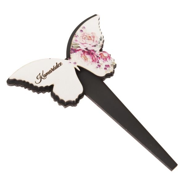Dřevěný zápich motýl - růže, "Kamarádce", 0/50