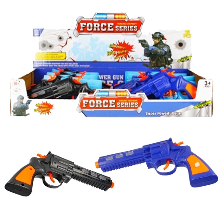 Pistole je dostupná ve dvou barvách: modré a černé. Obsah soupravy: pistole.