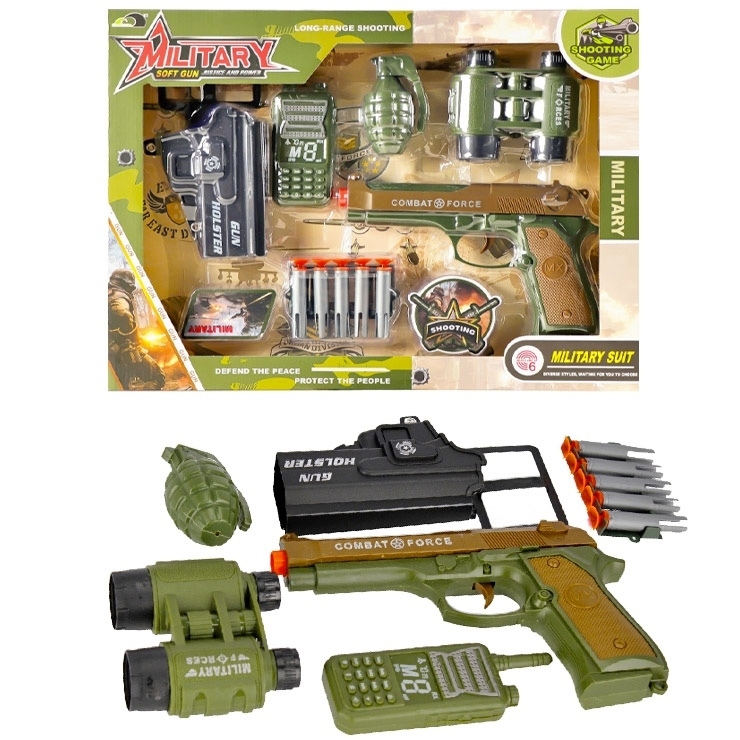 Military Set poskytne každému dítěti spoustu zábavy! Obsah soupravy: pistole, pouzdro na pistoli, dalekohled, granát, vysílačka, 5x pěnové náboje. Rozměry balení [cm] 38x29x5Hračka je určena pro děti ve věku 3+. . prečítať celé