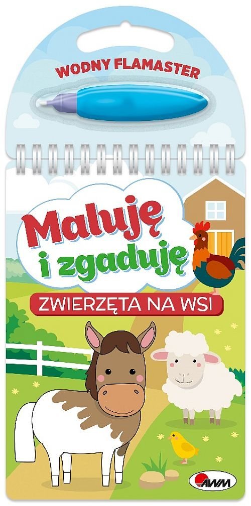 Malowanka wodna WIELOKROTNEGO UŻYTKU – po wyschnięciu zabawa zaczyna się od nowa! W komplecie FLAMASTER, który wystarczy napełnić wodą. Książka wykonana z trwałego kartonu – służy nie tylko jako książka do KOLOROWANIA, lecz także jako ZGADYWANKA. Dziecko poznaje różne wiejskie ZWIERZĘTA. Malując...