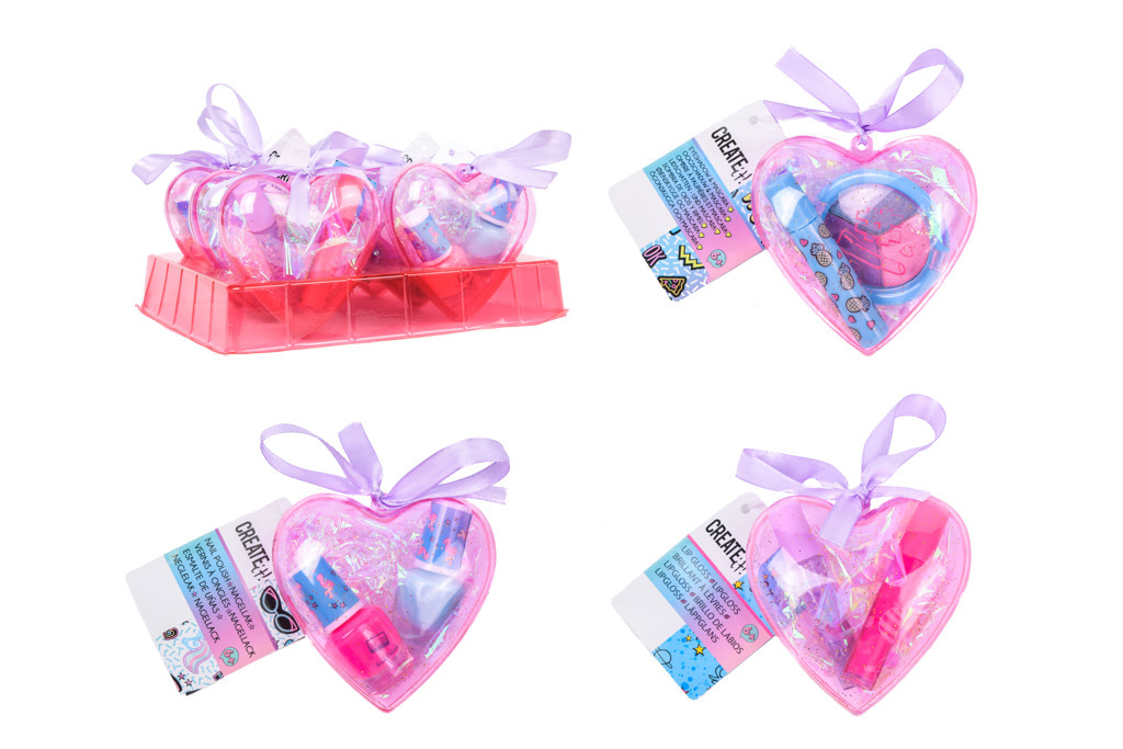 Make up v srdíčku – tři různé druhy – 2× lesk na rty, řasenka aoční stíny a 2× lak na nehty. prečítať celé