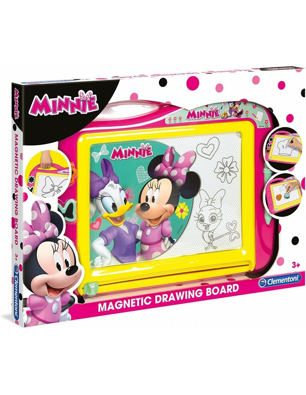 Přenosná magnetická tabulka s motivem oblíbené postavičky Minnie je určena pro tvorbu barevných mistrovských děl. S pomocí speciálního pera a razítek můžeš vytvořit svůj vlastní obrázek. Pokud se ti náhodou něco nepovede, jednoduše tabuli smaž a začni znovu. Tento kreativní set je navržen tak, aby byl snadno přenositelný v ruce.