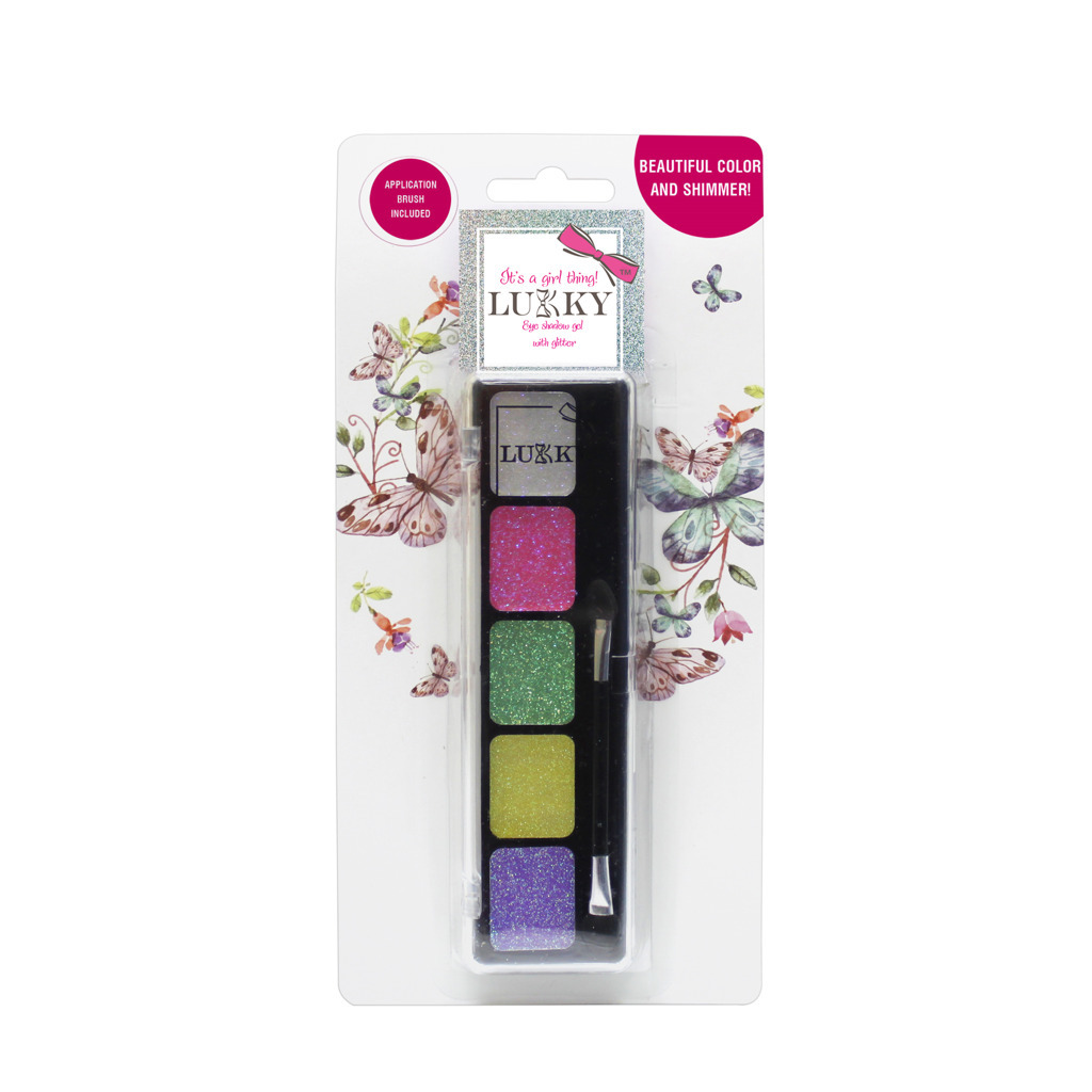 Gelové oční stíny Lukky se třpytkami a štětečkem v 5 různých odstínech. Vhodné pro děti od 3 let. prečítať celé