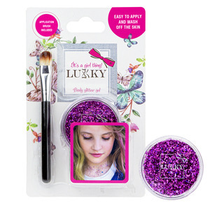 Třpytivý tělový gel Lukky s aplikátorem. Snadno se nanáší a je lehce omyvatelný. Vhodný pro děti od 3 let. prečítať celé