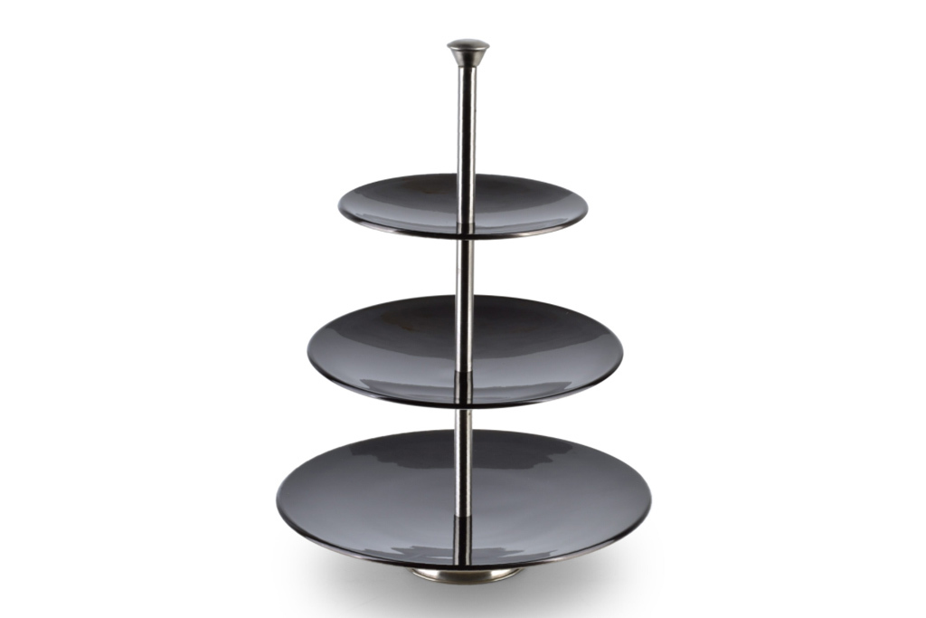 Servírovací stojan se třemi patry pro servírování pochutin. Hojně používaný při rodinných oslavách, firemních večírcích nebo když chcete pohostit návštěvu a potřebujete umístit na malý prostor hodně dobrot.