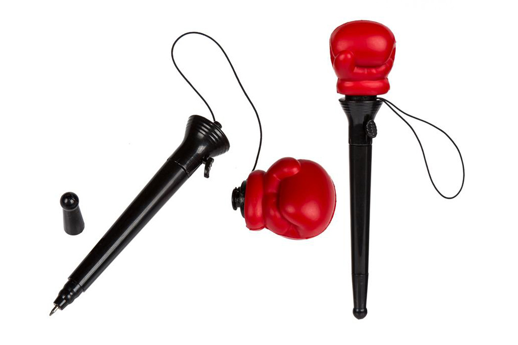 Kuličkové pero, se kterým můžete kdykoliv boxovat a pobavit tak své okolí. Stačí jedno kliknutí a rukavice z pera odstřelí. Zábavné pero potěší jako vtipný dárek do kanceláře nebo studentovi.Rozměr: 17 cm prečítať celé