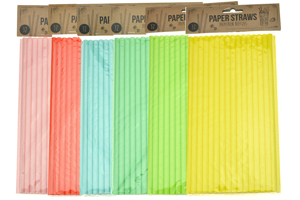 Papírová brčka 24cm - Set 32ks, mix barev