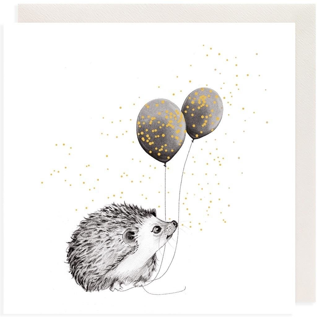 Karnet Złocony kwadrat CL3814_BL Jeż z balonami