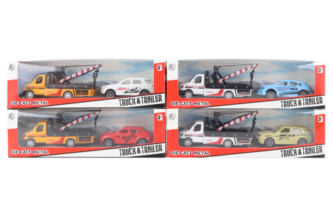 Kovový model odtahovky s osobním autem. Rozměr odtahovky cca 11,5 x 5 x 4 xm,rozměr auta cca 8 x 3 x 3,5 cm. Rozměr balení cca 23,5 x 7 x 6 cm. Věk 3+ prečítať celé