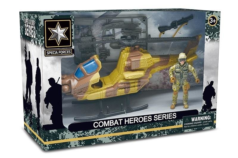 Zestaw wojskowy z helikopterem.W zestawie:helikopter 22 cm,1 figurka żołnierza,akcesoria. prečítať celé