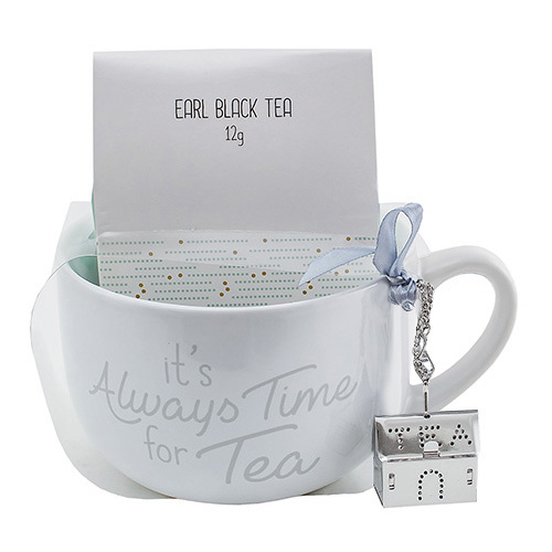 Dárková sada, Černý čaj 12 g, bílý keramický hrnek s nápisem 500 ml, sítko