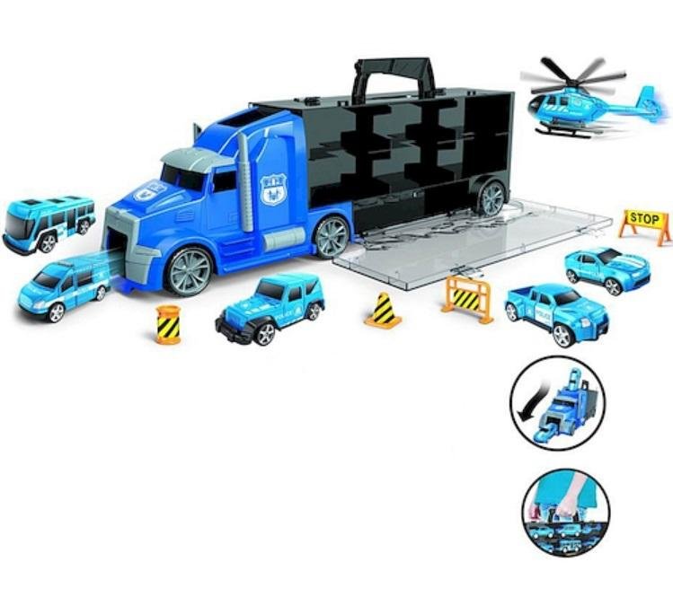Zestaw autek w wygodnej walizce w kształcie ciężarówki.