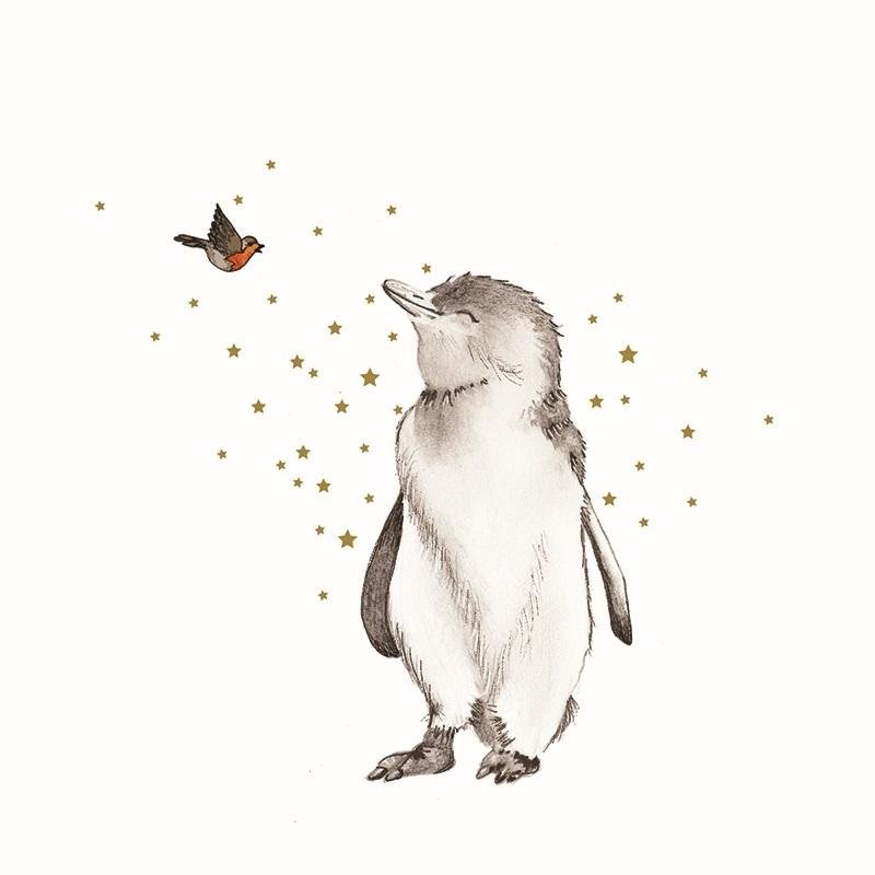 Karnet złocony kwadrat CL3903_BL Pingwin i ptaszek