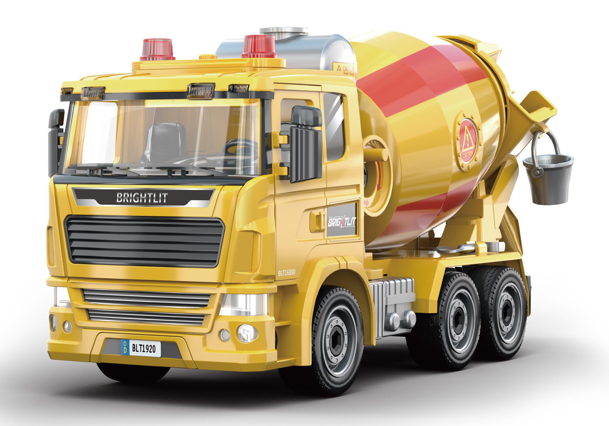 Velikost 38 cm. Sklápěcí kabina, otočná míchací nádrž, otevírací dveře kabiny.