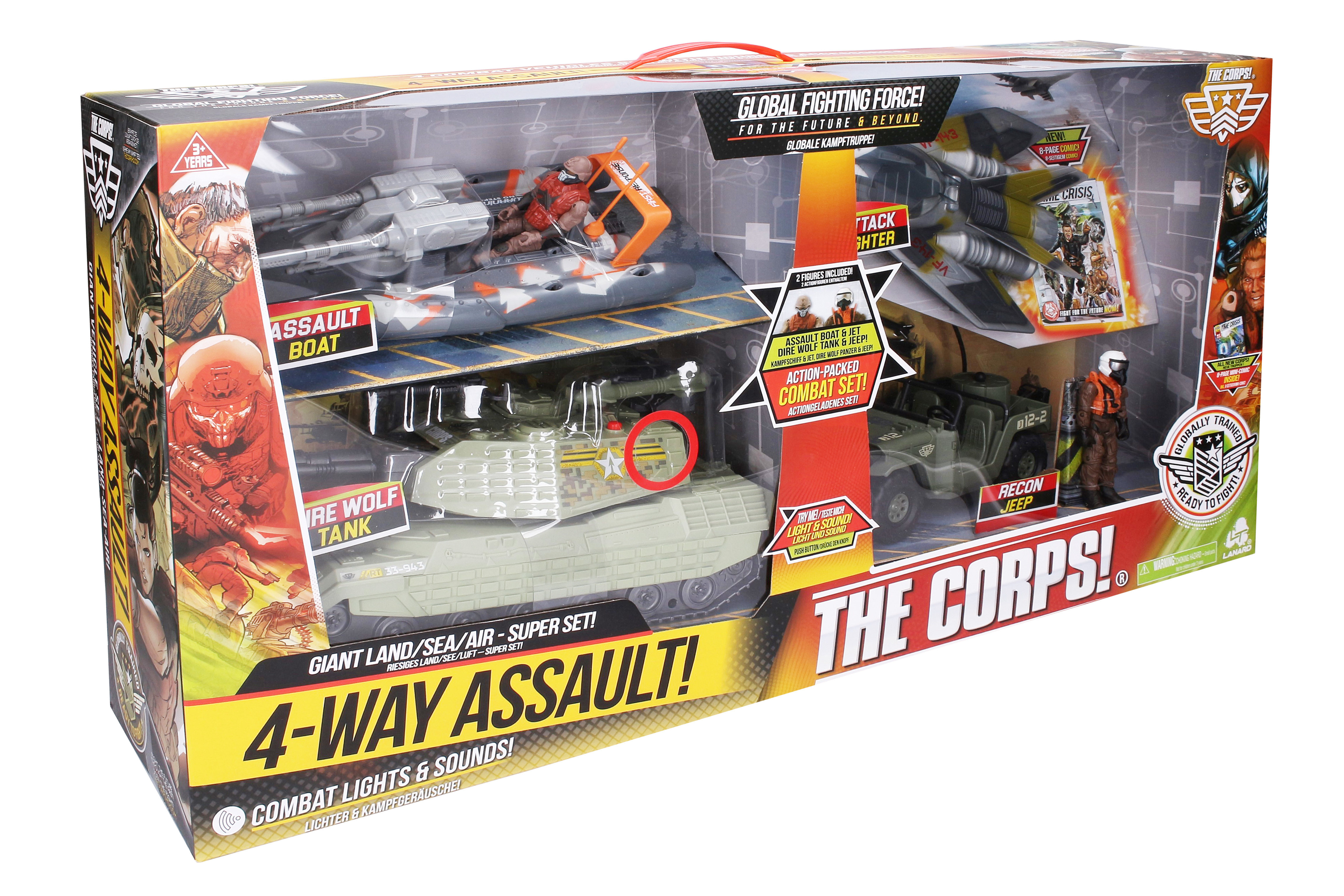 Vstup do drsného světa The Corps a zažij spoustu akce a zábavy! Pusť se do boje proti úhlavnímu nepříteli. Balení obahuje: 2 x figurku 8str. mini-komiks člun tank džíp stíhačku Doporučený věk: od 6 let prečítať celé