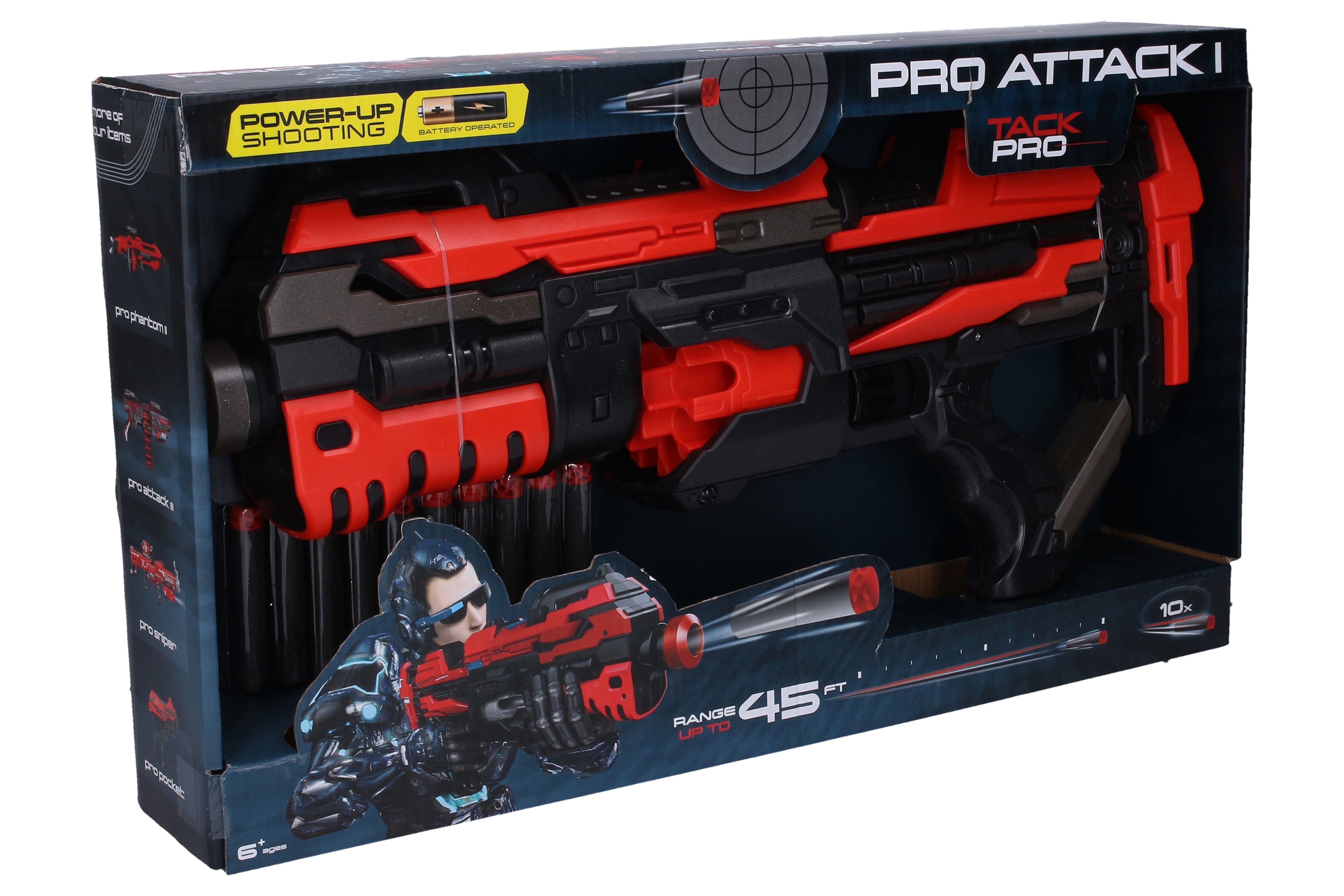Puška na pěnové náboje. Rozměry pušky 45 x 8,5 x 21 cm. Balení obsahuje pušku a 10 nábojů. Puška má rotační zásobník, který se posouvá po každém výstřelu. Baterie v vkládají do pažby. On/off spínač na levé straně pušky. Bezpečnostní pojistka na přední části hlavně. Návod na nabíjení na obalu.