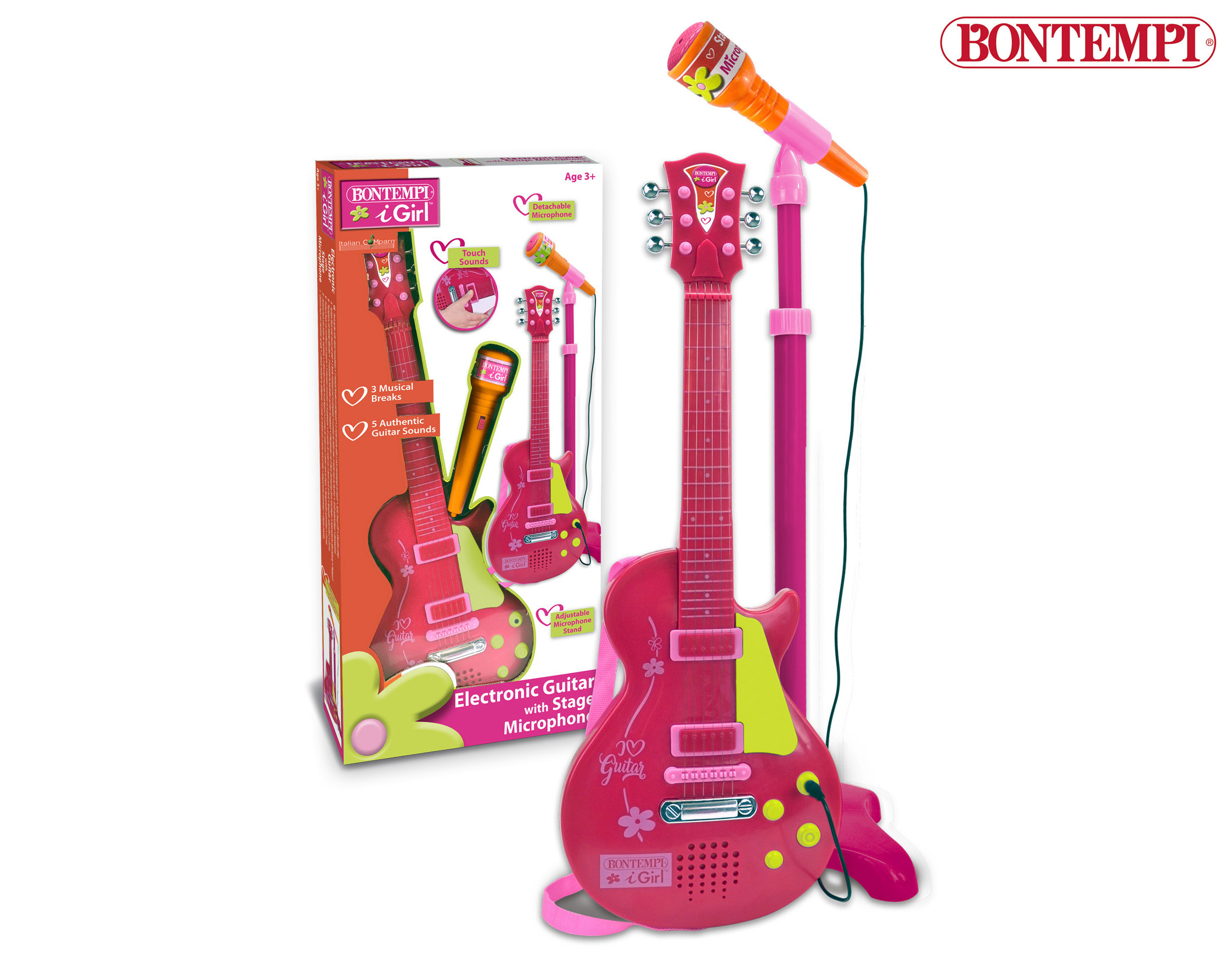 Rocková kytara s pódiovým mikrofonem pro zesílení hlasu • Nastavitelný stojan mikrofonu • 6 kovových strun s 5 rockovými demosongy • 3 hudební přestávky na pickguardu • 5 rytmů • Automatické vypnutí • Ramenní popruh • Napájení: 2 R6 / AA 1,5V baterie (nejsou součástí balení), Kytara: Rozměr:...