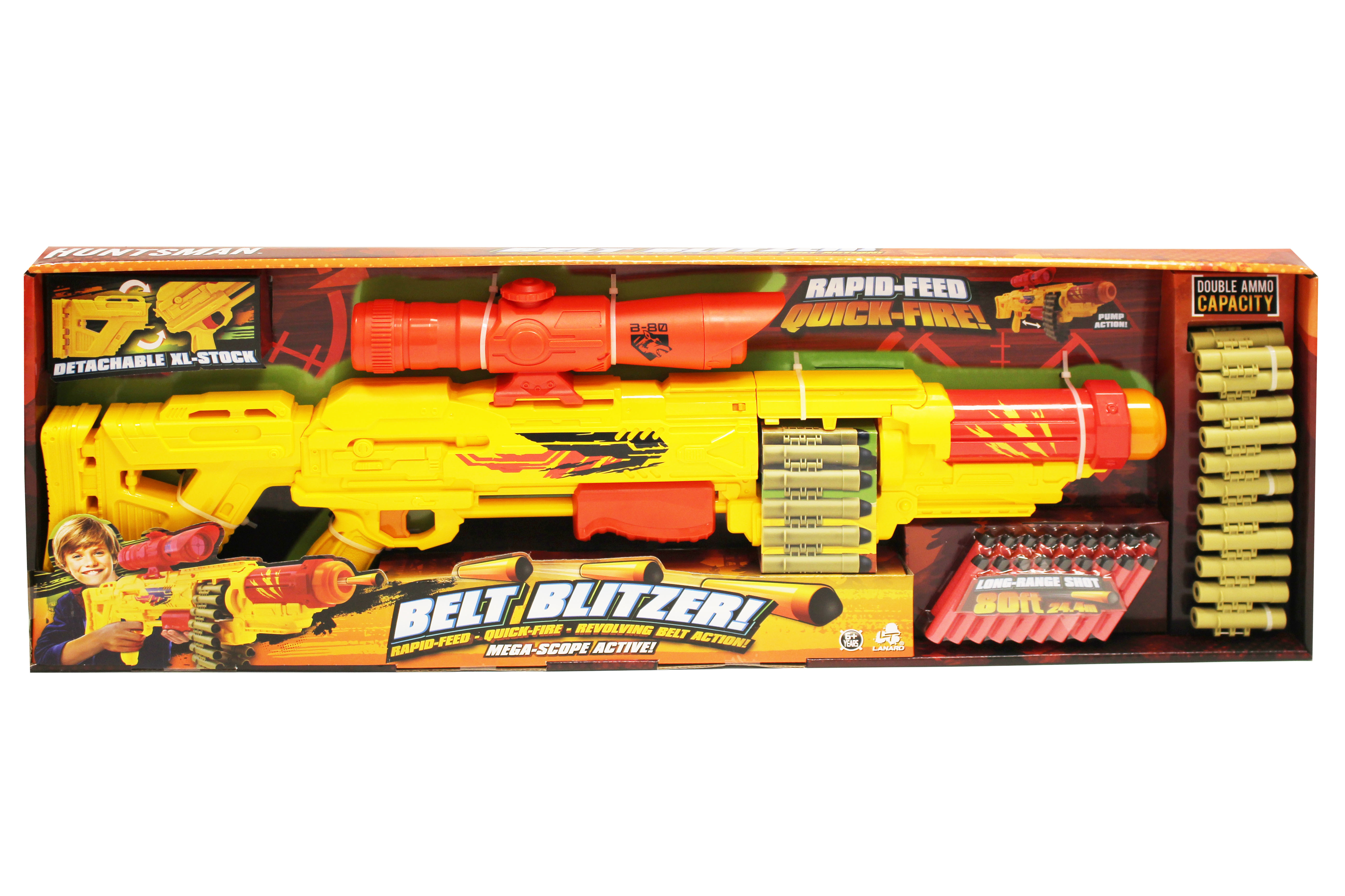 S odstřelovací puškou s pásem Huntsman Belt Blitzer se staneš opravdovým lovcem. Najdi co nejlepší skrýš, přesně zamiř a pal! S touto pistolí nemůžeš minout. Má přesný odnímatelný zaměřovač a dostřel až 24metrů.