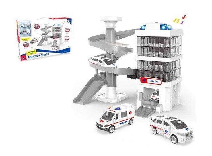 Baza pogotowia to miejsce z którego ratownicy ruszają aby ratować komuś życie. W tej bazie znajdują się 2 karetki. Zabawka świeci kolorowymi światełkami i wydaje dźwięki.Podane wymiary są wymiarami opakowania.Zabawka dla dzieci od 3 lat. Produkt zapakowany w kartonowe opakowanie.