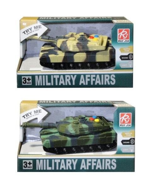 Plastikowy czołg dla dzieci. Urozmaici czas podczas zabaw militarnych. Zabawka wydaje dźwięki i świeci kolorowym światełkiem.Zabawka działa na baterie typu AG13. Baterie znajdują się w zabawce. Produkt występuje w kilku wersjach kolorystycznych, wybierany losowo. Cena dotyczy jednej sztuki.Zabawka przeznaczona dla dzieci od 3 lat. Podane wymiary są wymiarami opakowania.Zabawka zapakowana w kartonowe opakowanie z okienkiem.