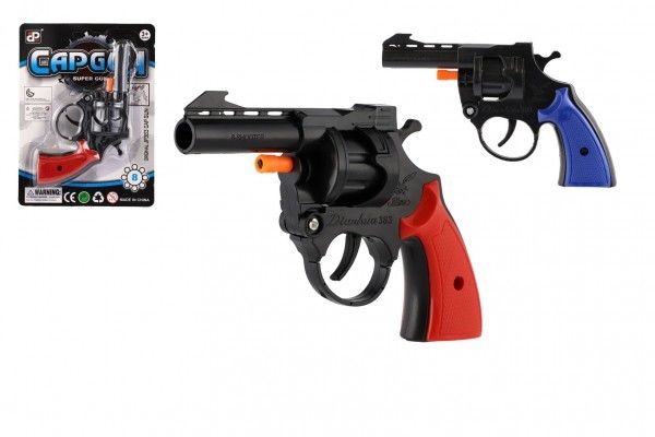 Pistole na kapsle 8 ran plast 15cm 2 barvy na kartě 14,5x20x3cm
