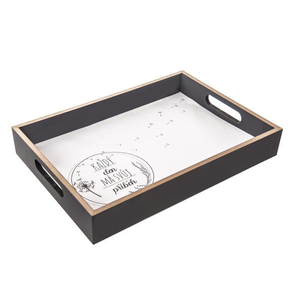 Servírovací tác se dvěma uchy pomůže při servírování i přenášení nádobí. S dekorem kolekce KAŽDÝ den MÁ SVŮJ příběh. Také může být pěknou dekorací nebo součástí dekorace. Materiál: lisované dřevo s povrchovou úpravou - MDF (dřevovláknitá deska). Rozměry: 34x24x5 cm. prečítať celé