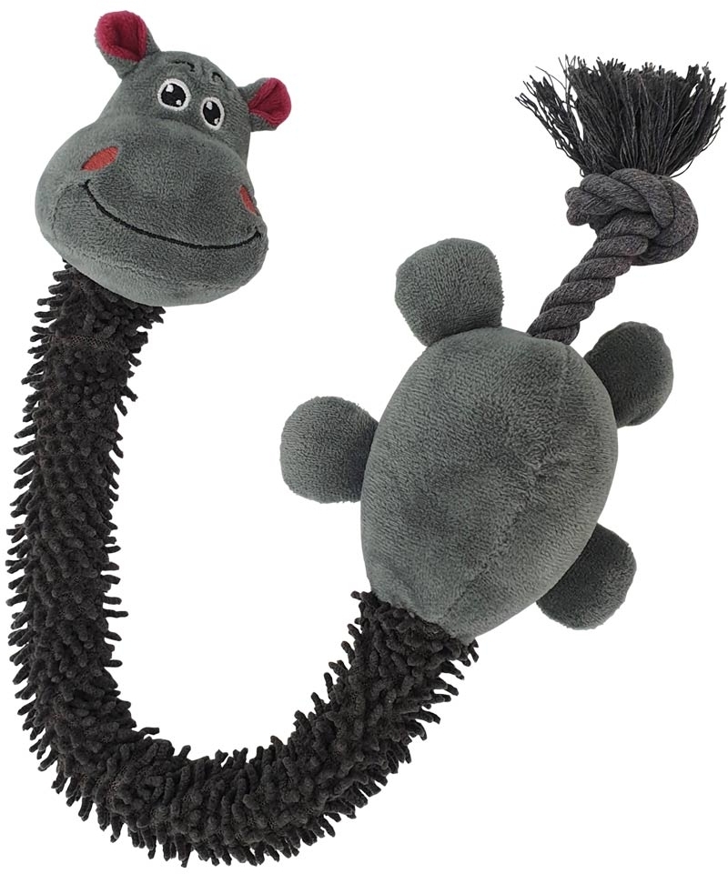 Hračka pro psy ke kousání a zábavu. Hroch v šedé barvě a celkovým rozměrem 61 cm. Hračka je ideální pro psy, kteří chtějí hrát a mazlit se. Je ideální k mazlení a lano je určené k tahání a hraní. Tato hračka pro psy je vyrobena z plyše a je vybavena všitým silným lanem pro větší pevnost. S...