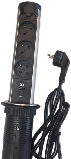 Diskrétně zapadne do pracovní desky v kuchyni nebo kanceláři. Posun této lišty je automatický.Technická charakteristika: 3 zásuvky 2P+T. 2 USB nabíjecí porty A+C 5V 3,1A. 16A. Vyžaduje vrtání otvoru o průměru 60 mm. Napájecí kabel: H05VV-F 3G 1.5 mm, délka: cca 2 m. prečítať celé