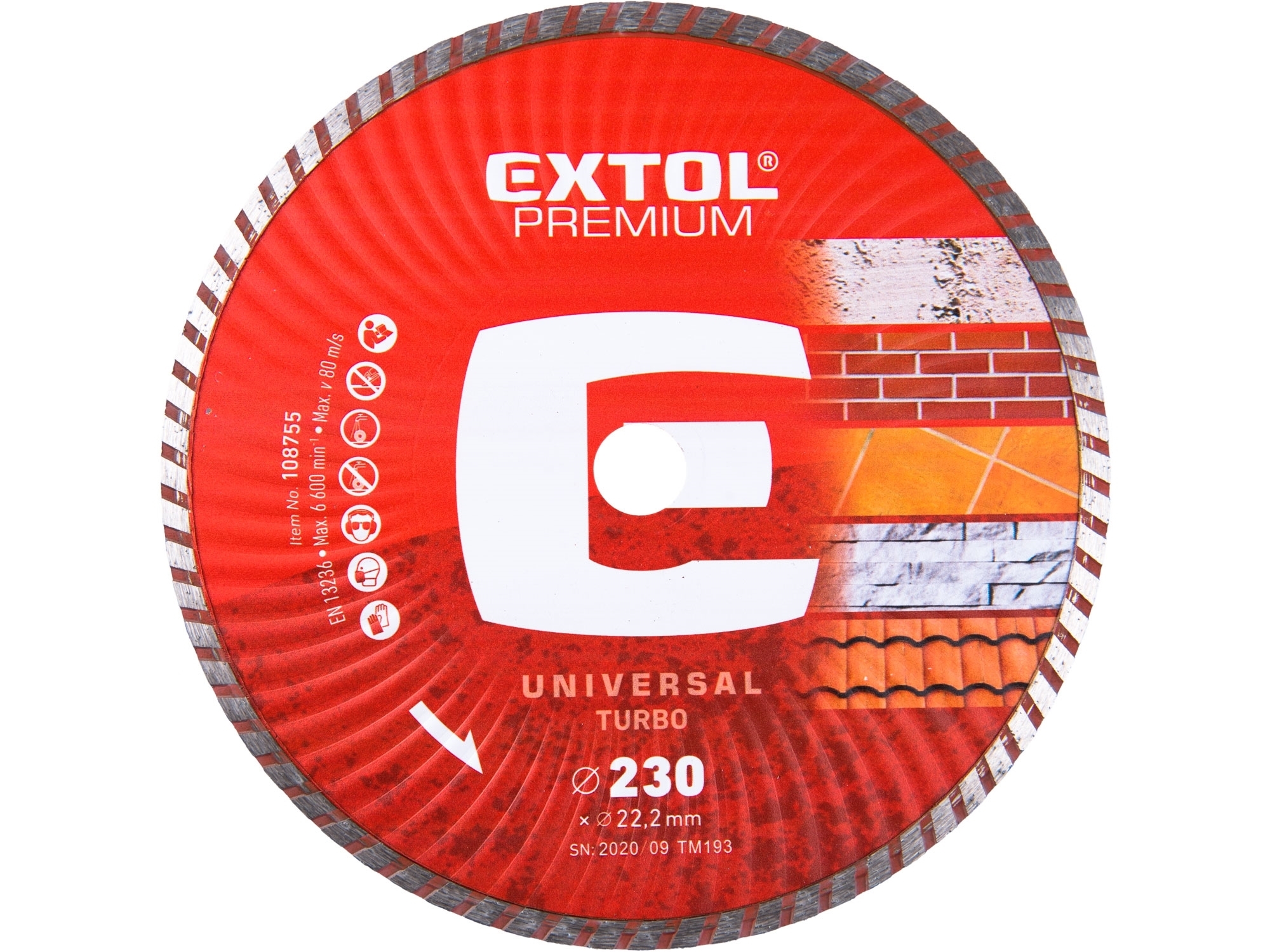 kotouč diamantový řezný, turbo - suché i mokré řezání, O 230x22,2x2,8mm