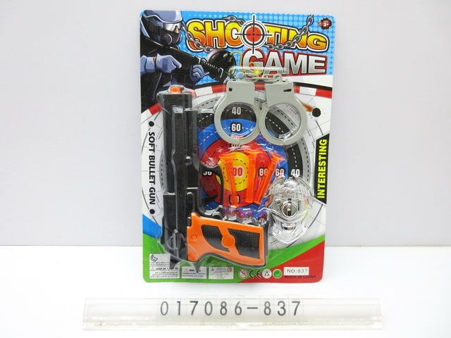 Policejní set. Velikost pistole 20,5 cm. Obsahuje pistoli, 3 náboje, odznak, pouta. prečítať celé
