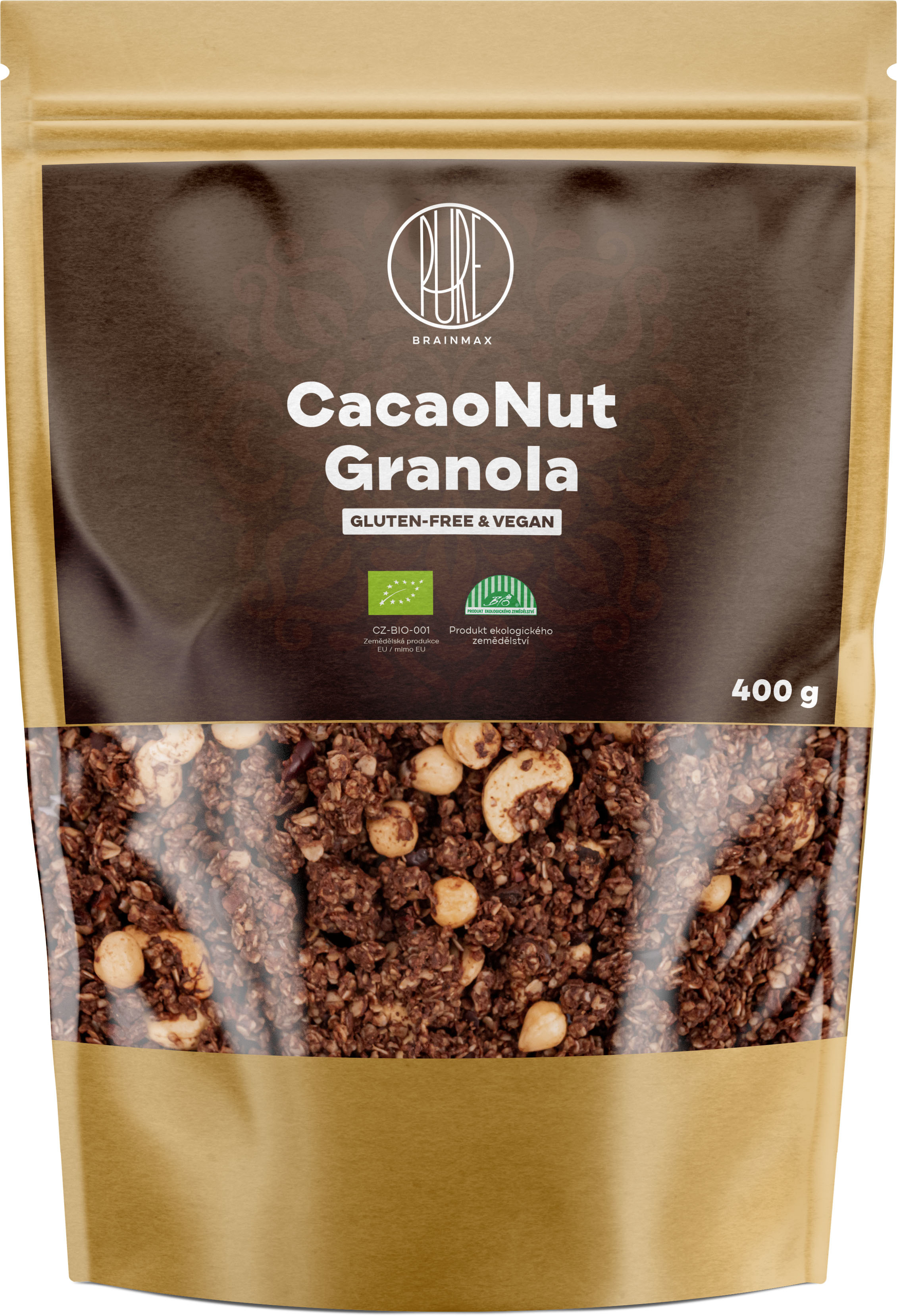 BrainMax Pure CacaoNut Granola, Kakao a Lískový ořech, BIO, 400 g