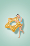 Nafukovací plážový kruh plný třpytek. Barevné třpytky v kruhu se na slunci třpytí a vytvářejí atraktivní efekty. Kruh je v provedení růžového srdce nebo zlaté hvězdy. Vyrobeno z kvalitního a odolného vinylu. Průměr: 91 cm. Rozměr balení: 33 x 19 x 1,5 cm. Věk: 10+. Používejte pouze pod dohledem dospělé osoby.