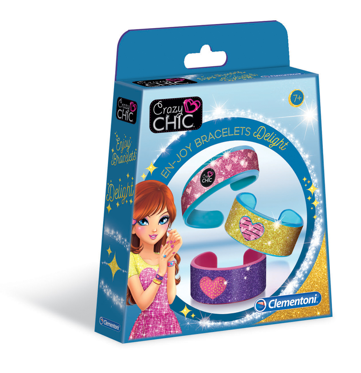 Exkluzivní sada pro vytvoření vzácných náramků ve stylu Crazy Chic! Barevné plastové náramky k ozdobení a přizpůsobení pomocí samolepek a jiskřivých třpytek... pro skutečně jedinečné výtvory! Ideální hračka pro stimulaci manuální zručnosti malých holčiček. Rozměry: 22 x 22 x 5 cm.Věk: 7+
