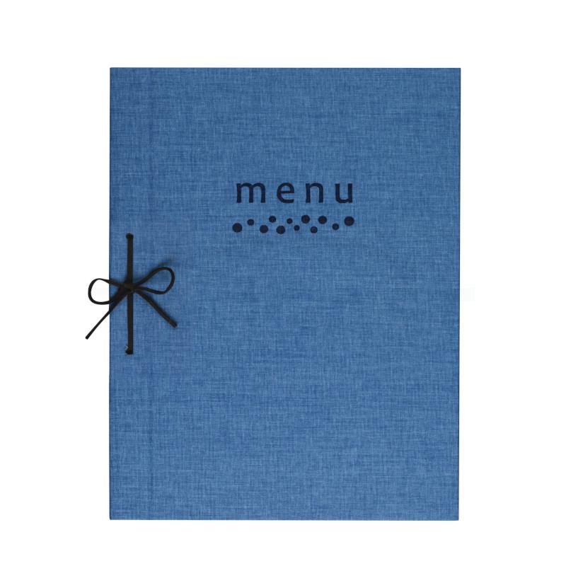 Jednoduchý, sofistikovaný a stylový – přesně to představuje tento obal vázaný koženou šňůrkou. Chraňte svá papírová menu před rychlým opotřebením s touto modrou kartou vhodnou pro nabídky natištěné na formát A4. Parádně se s ní manipuluje a snadno se uchopuje. Ideální pro kavárny, bary a restaurace s pravidelně se obměňujícím menu. Vyrobeno z Telflexu.