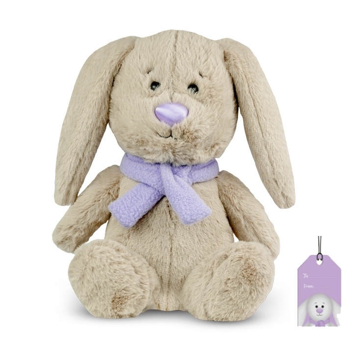Klasická plyšová hračka pro děti vyrobená z nejkvalitnějších materiálů. Zajíček plyšový s fialovou šálou.