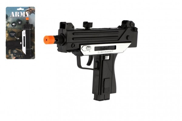 Pištoľ samopal plast 17,5 cm na batéria so zvukom so svetlom čierna na karte
