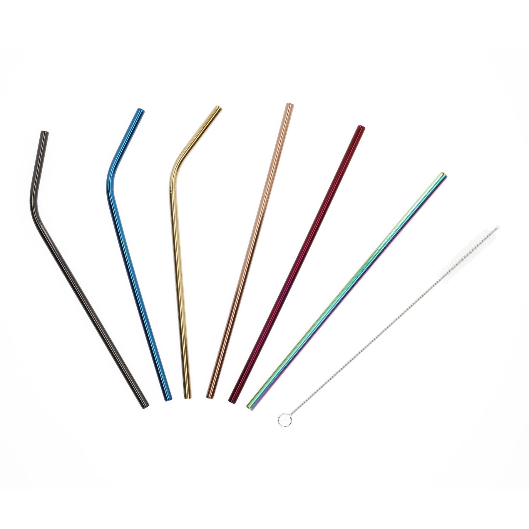 Sada 6 kusů kovových brček RIJO barevná 25 cm + čistící tyčinka Homla