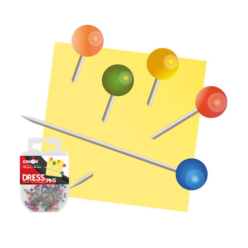 Špendlíky aranžerské/barevné JUNIOR, 38 mm/100 ks, pp box