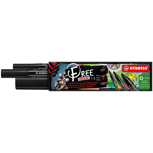 Akrylový popisovač STABILO FREE Acrylic 1xT100, 1xT300, 1xT800C, sada 3 ks
