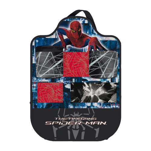 Kapsář Spider-man je vybaven různě velkými kapsami a je ideální pro uložení hraček, jídla, a jiných věcí při cestování autem. Je vyroben z nylonu, a tak je snadno omyvatelný. Váže se za opěrku předního sedadla a ve spodní části se váže pomocí šňůrek.