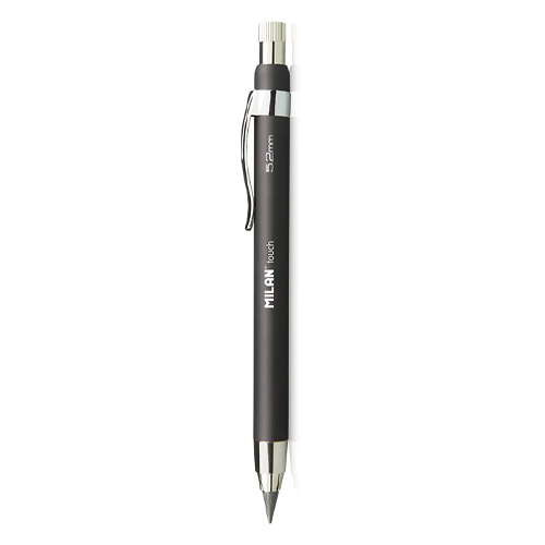 Jedinečná mechanická ceruzka MILAN s priemerom tuhy 5,2mm. S integrovaným strúhadlom, ktoré jednoducho vyberiete odskrutkovaním stláčacieho mechanismu. Hladké, guľaté telo v matnej čiernej farbe so striebornými doplnkami. Možnosť dokúpiť náhradné tuhy kód: 3802062. prečítať celé