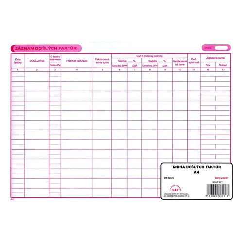 Kniha došlých faktúr A4, 30l istov (117) prečítať celé