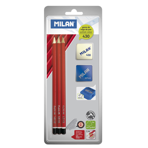 Tužka MILAN 3xšestihraná HB + guma + ořezávátko