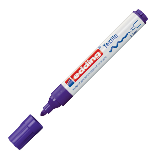 Popisovač na textílie s okrúhlym hrotom strednej hrúbky. Plnený atramentom bez zápachu na báze vody. Farby treba zafixovať žehlením na sucho. Po zafixovaní sú farby odolné voči praniu do 60°C. Šírka stopy: 2-3 mm. Farba: fialová. prečítať celé
