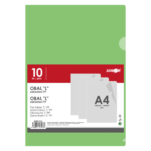 Obal zakládací "L" PP/A4, zelený - sada 10 ks