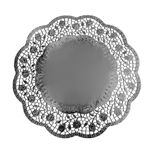 Krajky dekor. kulaté 33 cm stříbrné (4 ks v bal.)