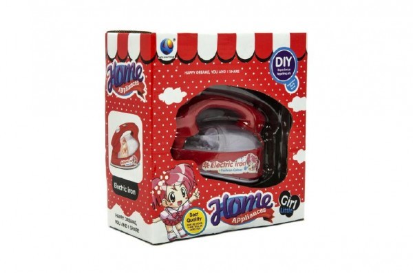 Žehlička malá plast 12cm na baterie se světlem v krabici 16x17x8cm