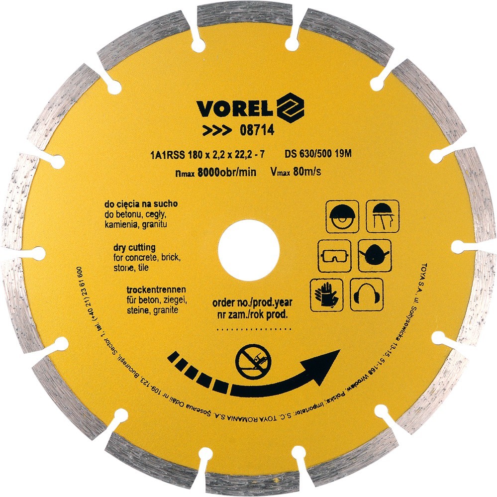 Diamantový segmentový kotouč pro suché řezání betonu, zdiva, kamene a dlažby.Technická dataprůměr (mm)180otvor (mm)22,2max. ot./min8000 prečítať celé
